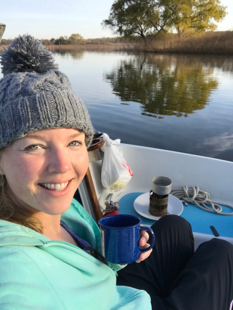 We motored back through the canals as the sun set, tied Guppy up at the dock, and headed in. Jacob stated that a storm was coming pretty early in the morning and that we should get Guppy all packed up before it got too dark. As I got her back on the trailer and we were taking down her mast, I realized that this trip was completely without incident. No drama and just smooth sailing. What a lucky duck I am! We all chatted, ate dinner and then climbed into our tents (or hammocks) for an early bedtime. I laid in my tent, listening to the crickets and the wind, thinking of the day’s fun. It was a great trip.