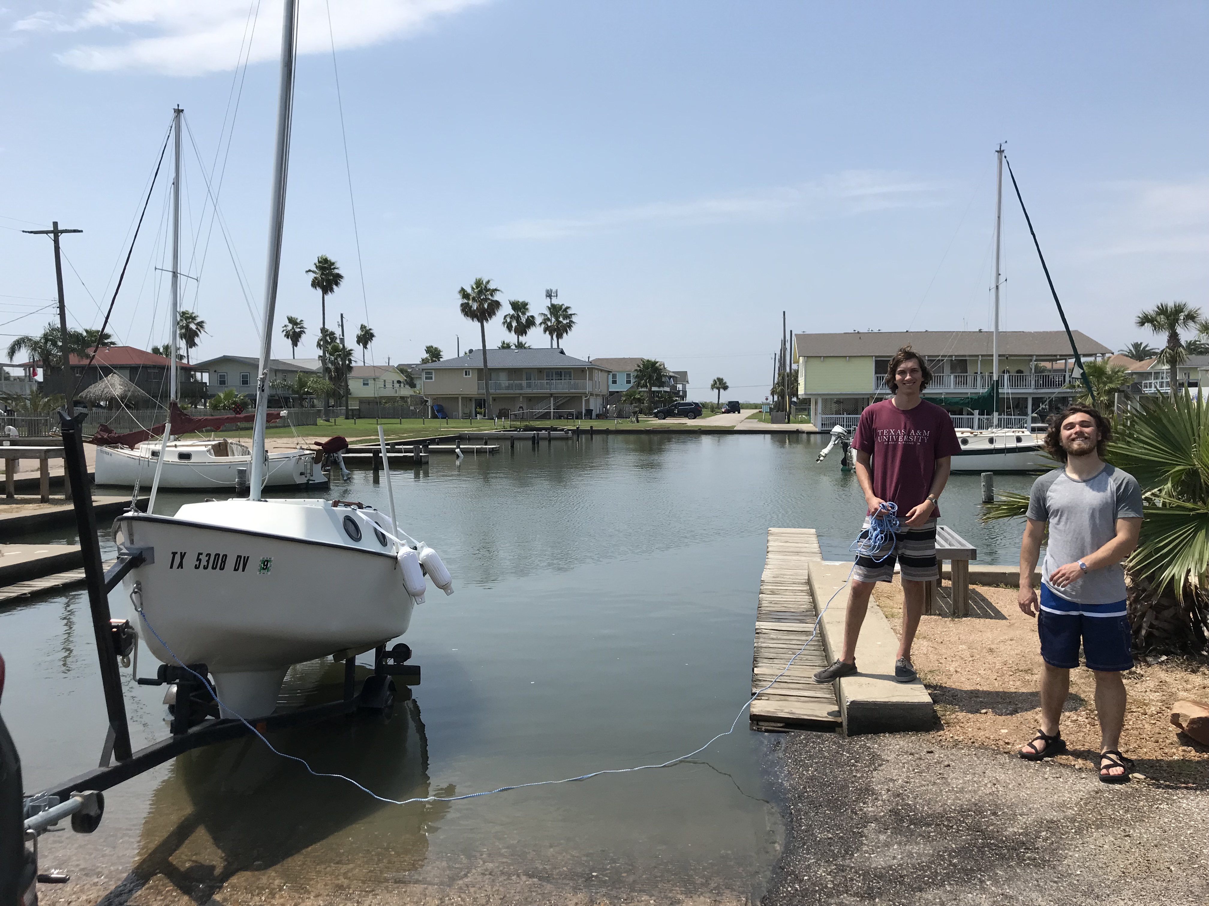 Friday morning at 1 a.m. my eyes popped open and my mind started up. “I must check the weather,” I thought. Friday was forecasted to be 72 degrees with winds 10-15 mph for Galveston, Texas. Saturday was predicted to have 50% thunderstorms and winds gusting up to 20 mph. I started stressing, and I wished I could join everyone for the perfect weather day on Friday. My Aggie Yacht Club would be heading to Galveston that Friday afternoon for their annual coast trip, while I would be working.  I had missed last year’s coast trip, so I was super excited to partake in this year’s. I planned to tow Guppy from Bryan, Texas to Jamaica Beach in Galveston early Saturday morning.