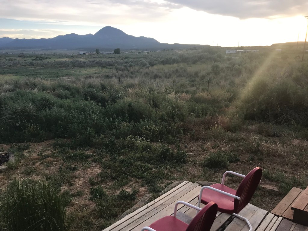The morning was beautiful, and I soaked it up while brewing the all-important coffee. I had originally wanted to paddle board, but signs posted around the lake made it clear that people were to stay out of the water, that no wading nor boating was allowed. I then started the drive towards my next state of Colorado. I enjoyed music in the morning and audio books or podcasts in the afternoon. I had packed meals in my cooler, so I could save money, eat healthy and stopping for lunch was always fun. Cortez, Colorado was my second night’s planned stop, and I was very excited for this one because I would be staying in my first tiny home. I have been interested in tiny homes, tiny boats and really in any minimalist way of life. Maybe one day, I will have a tiny home. So after an 8 hour drive day, I made it to Colorado. Guppy had been towing along nicely and I continually stopped to check on her and the trailer throughout the trip. The tiny home was so adorable and sat on acres of beautiful private land. I watched the sunset with the mountains in the distance, did some relaxing bedtime yoga, and had a nice hot shower. The little house smelled warmly of cedar and was so very cozy. I slept like a rock in my loft queen sized bed with a sky light displaying the stars overhead.