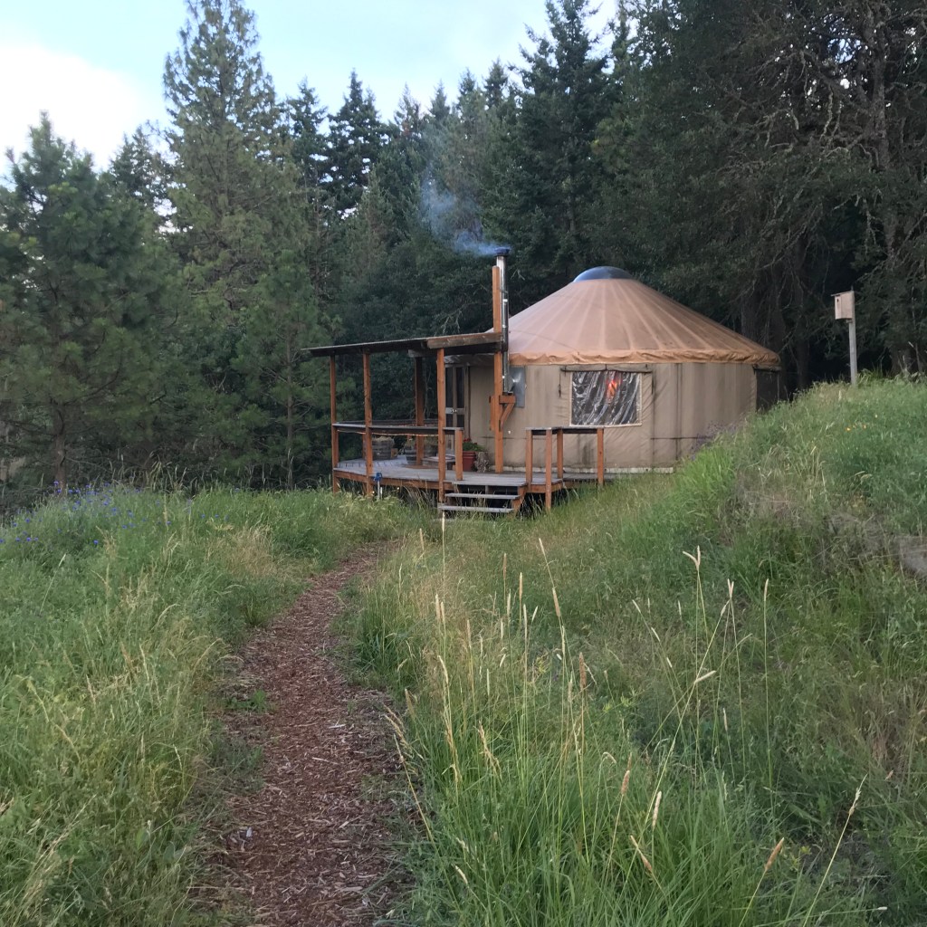 My first impression of Oregon was that it was literally freezing, sleeting as we crossed into the state. My expensive winter clothing purchases now seemed even more justified. Another note worthy thing about Oregon is that you cannot pump your own gas there. Interesting. As I made my way up the steep and winding roads in the mountains near Mosier, Oregon, Guppy towed behind effortlessly. My next stay was to be at a yurt in the wild mountains of Oregon. There was no cell service in these mountains, and I got a little lost without the GPS telling me where to go, but eventually I found my way to the yurt. The yurt was adorable and surrounded by wildflowers overlooking the valley below. It had a wood burning stove and an outdoor rock shower (with hot water, yay!). I was able to start up the stove after several failed attempts. The wood logs crackled and popped, while I made a dinner of chicken and dumplings. I ate dinner on the porch enjoying the mountain views, when a black tail deer became interested in me and I in it. We watched each other, almost communicating in a way. I never felt lonely on this trip. I enjoy solitude. The yurt was so cozy and lovely. I slept well with a heavy wool blanket to keep me warm.